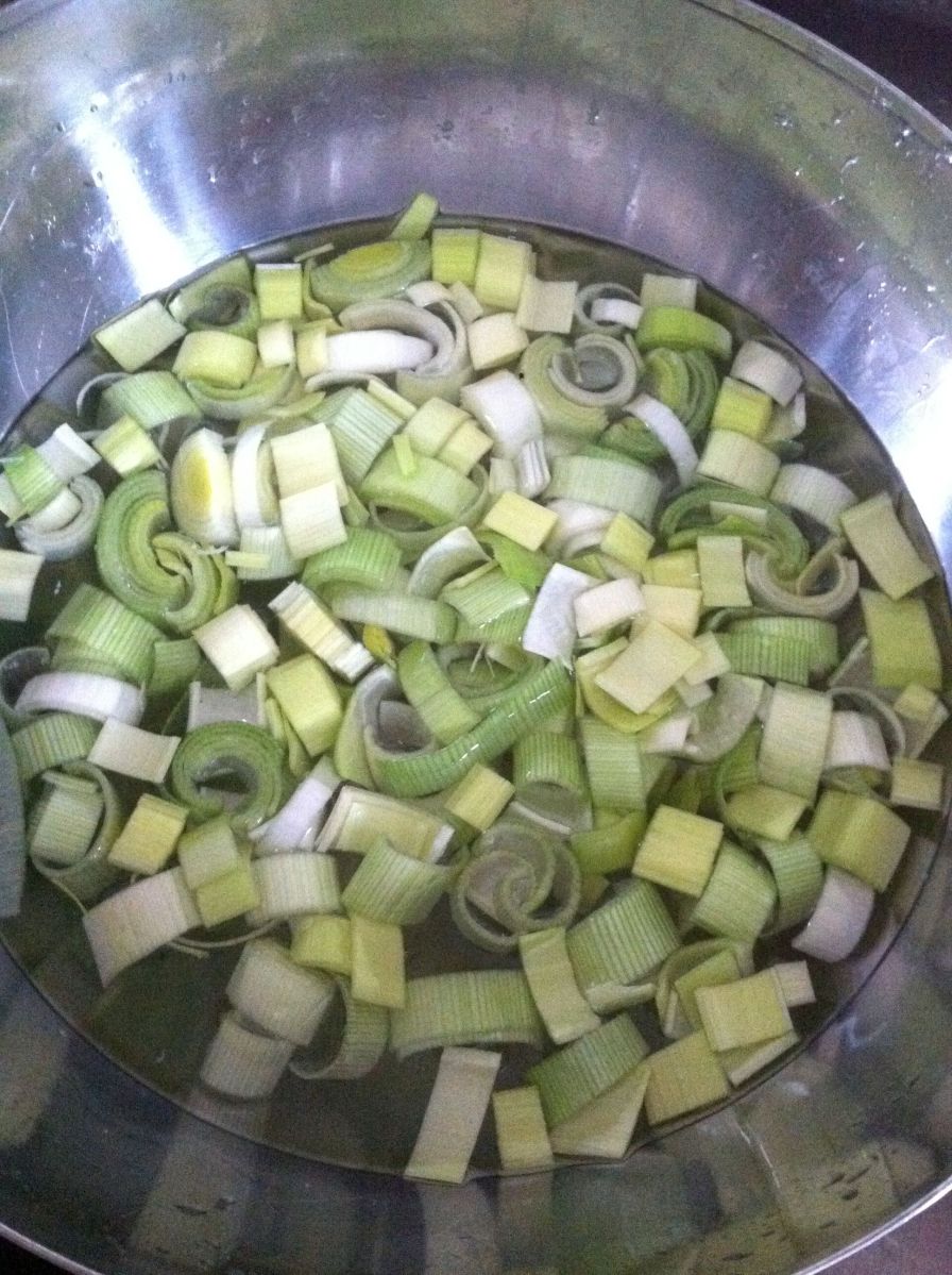 IMG_2527 Published August 5, 2013 at 1936 × 2592 in Creamy Potato Leek and Chicken Soup ← Previous Next → Slice, then wash your leeks.