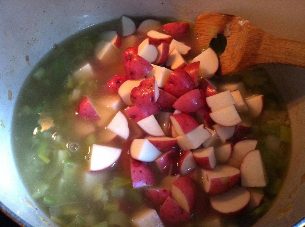 IMG_2542 Published August 5, 2013 at 2592 × 1936 in Creamy Potato Leek and Chicken Soup ← Previous Next → Stock and potatoes going in.